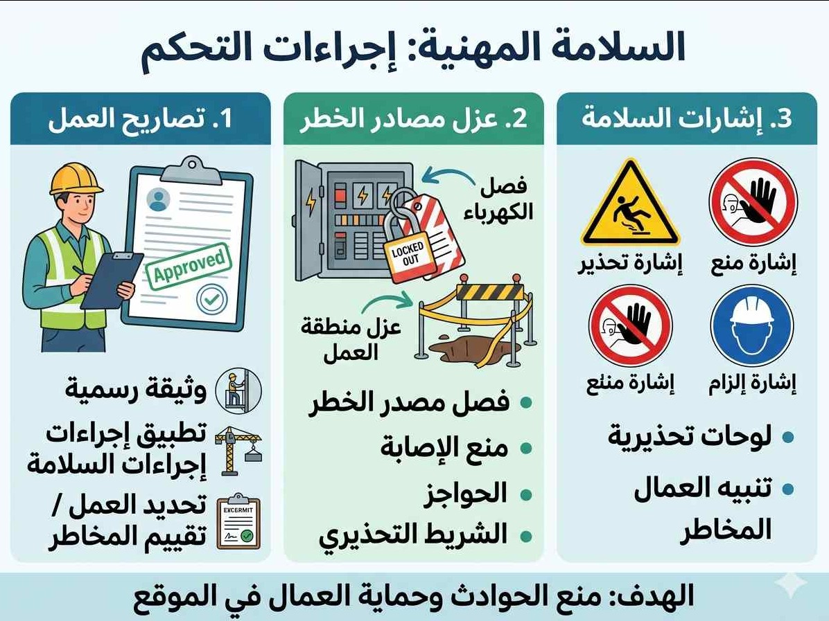 • إجراءات التحكم (تصاريح/عزل/إشارات)
