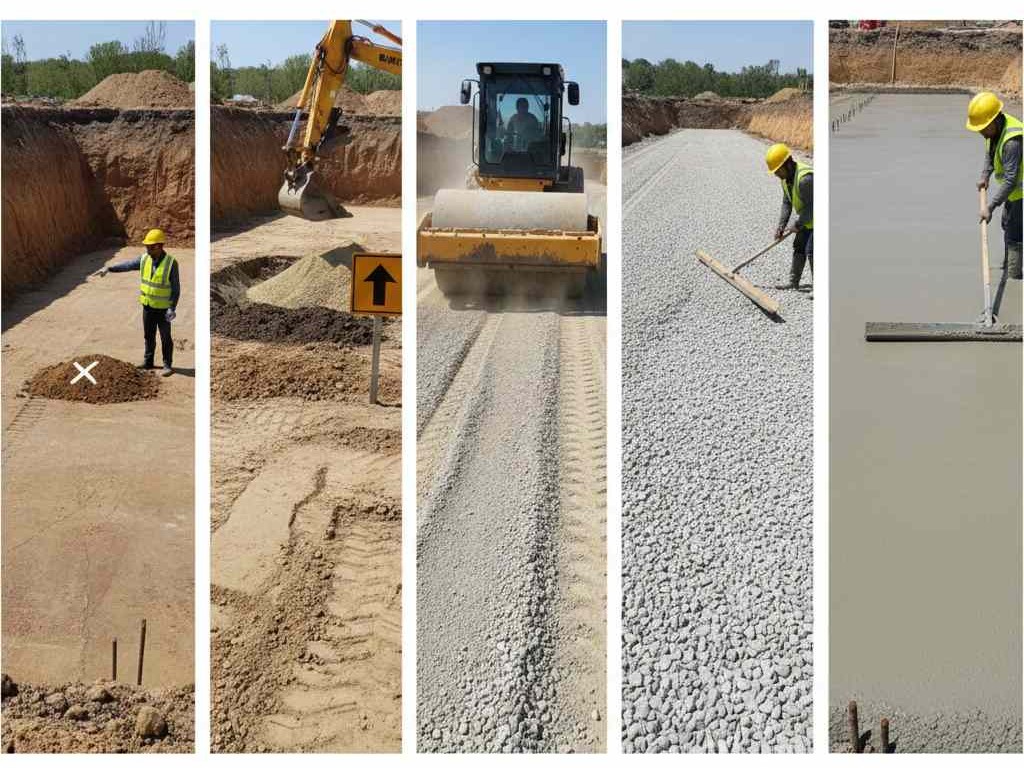 • تحضير طبقات التأسيس تحت الحصيرة (Sub-base / Blinding)