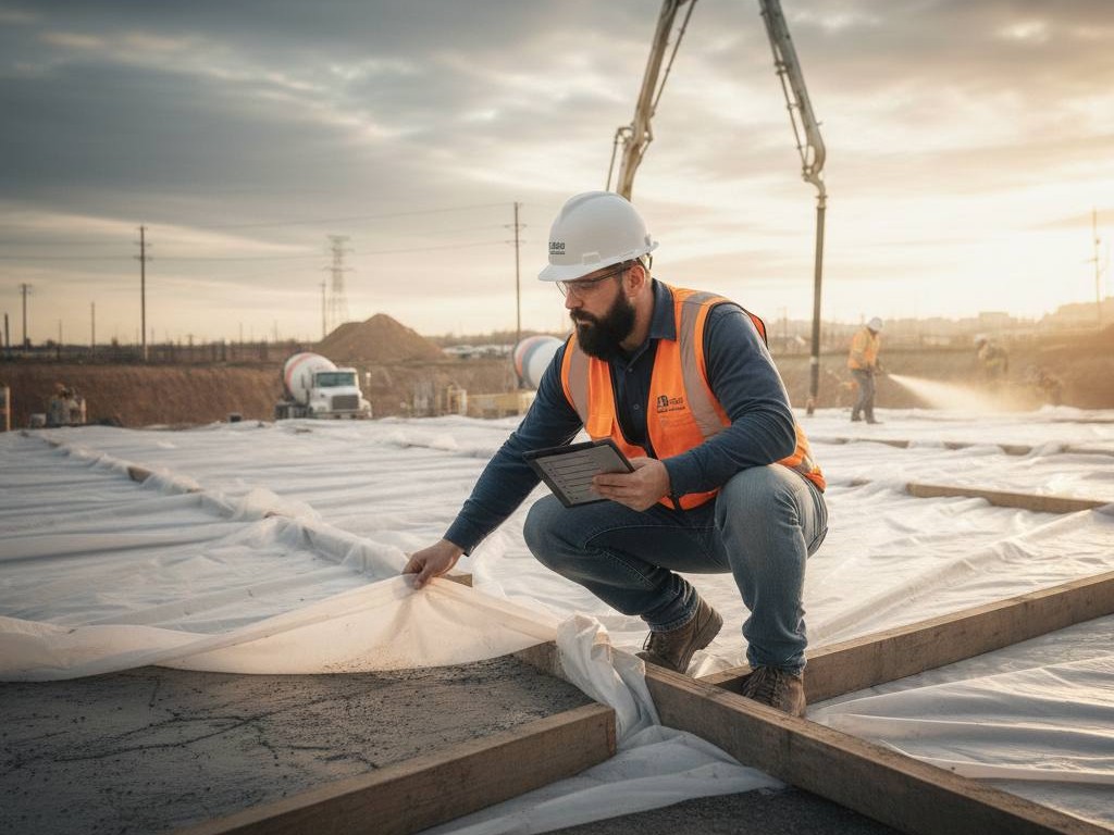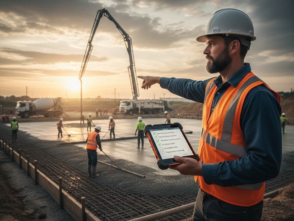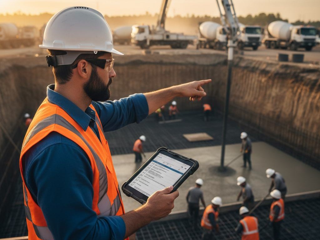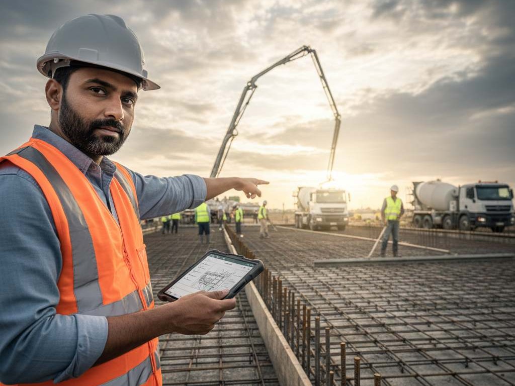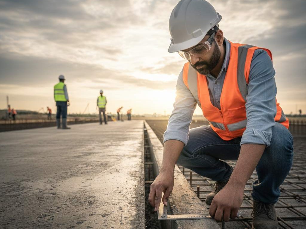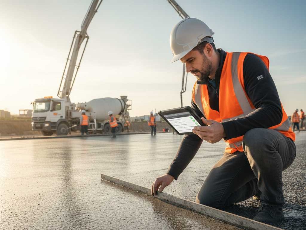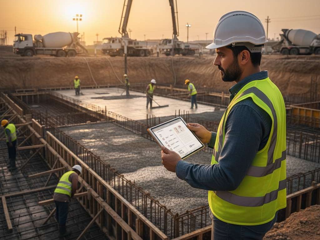 • مكونات الخرسانة وضبط المواد (مواد/ماء/إضافات)