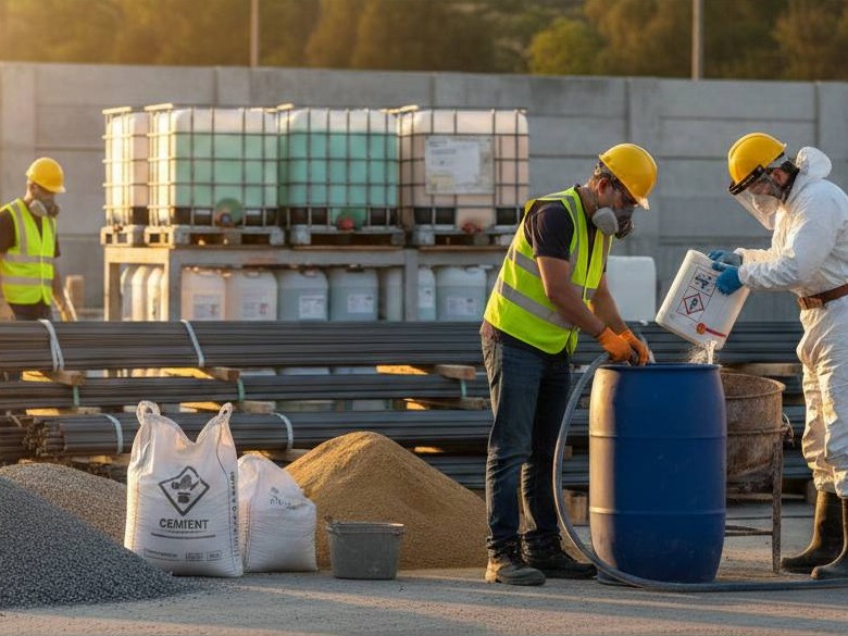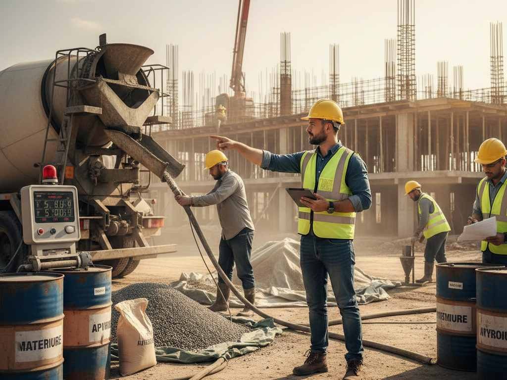 مكونات الخرسانة وضبط المواد (مواد/ماء/إضافات)