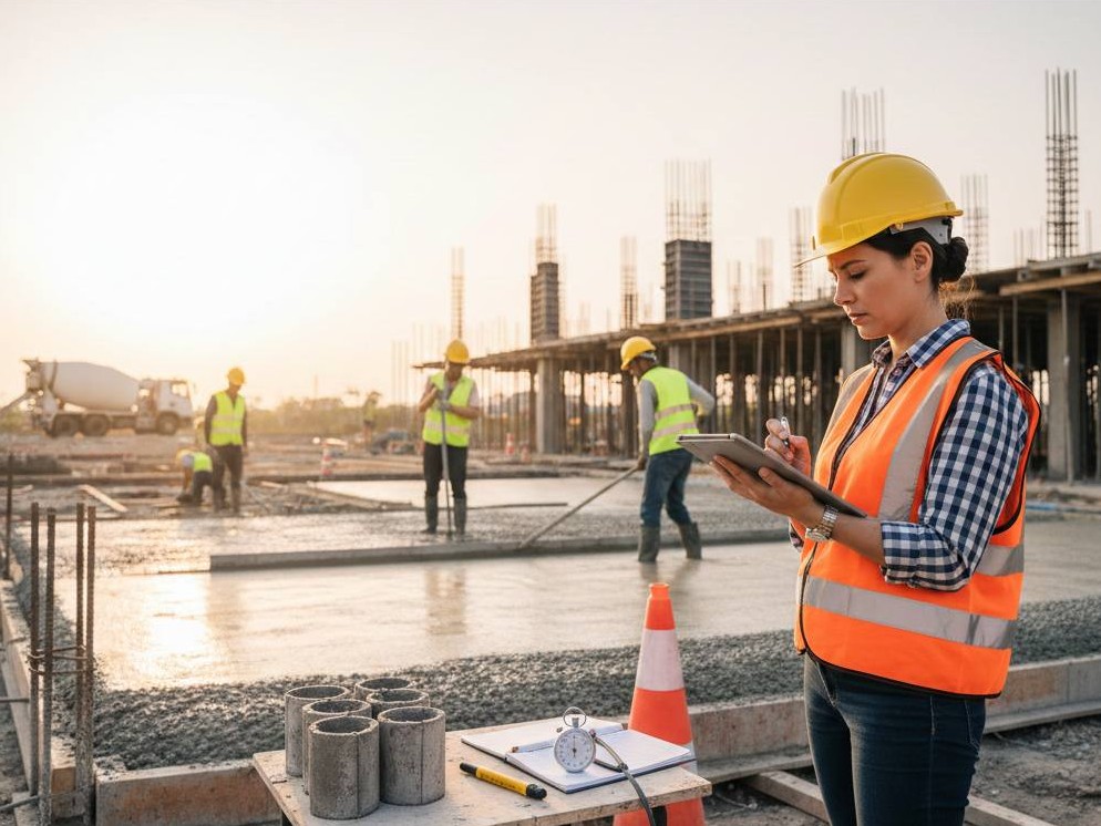 • مكونات الخرسانة وضبط المواد (مواد/ماء/إضافات)