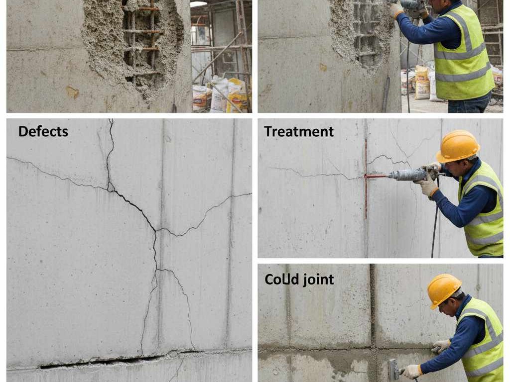 عيوب الخرسانة ومعالجتها (Honeycombing / Cracks / Cold Joints)