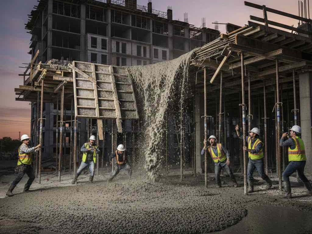 • مكونات الخرسانة وضبط المواد (مواد/ماء/إضافات)