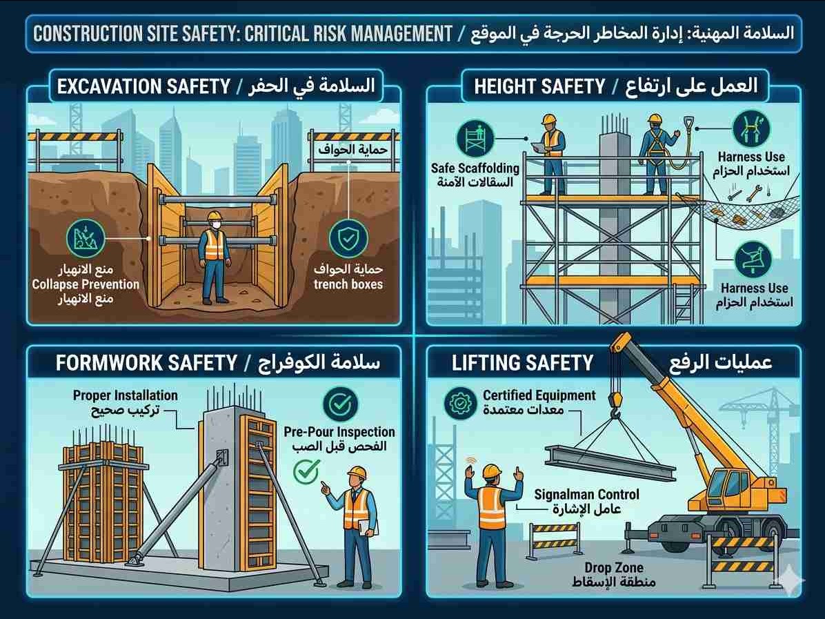 • السلامة في الحفر (حفريات/انهيارات/معدات)