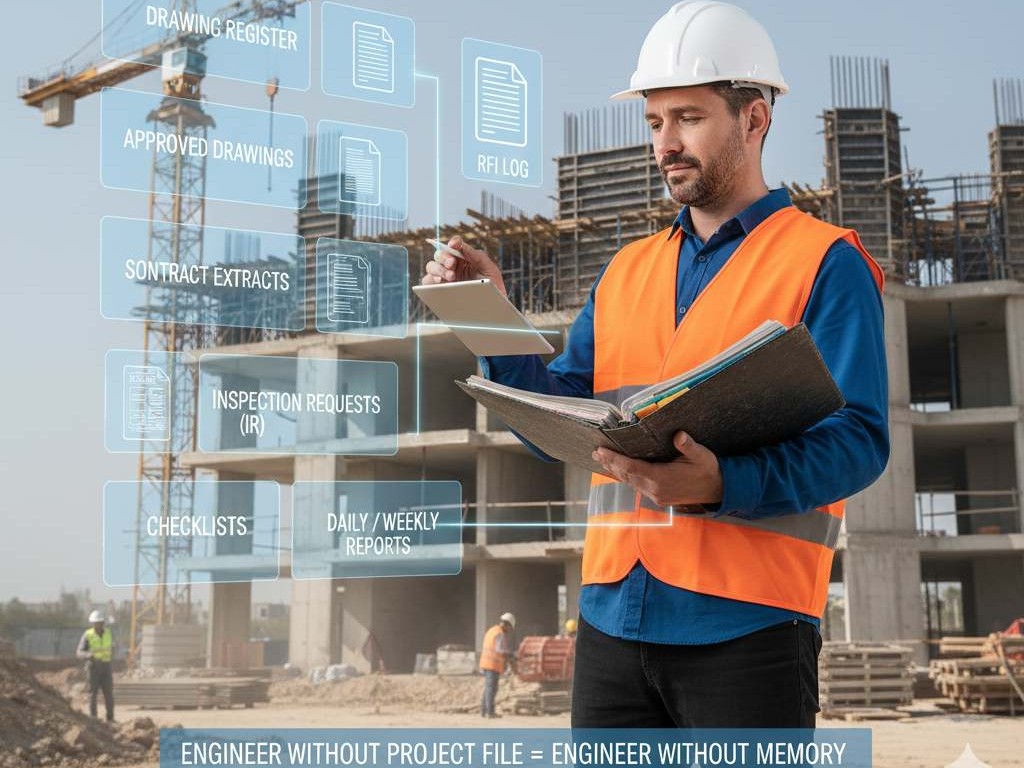 • ملف المشروع: ما الذي يجب أن يكون معك منذ اليوم الأول (Drawing Register / Logs / Forms)