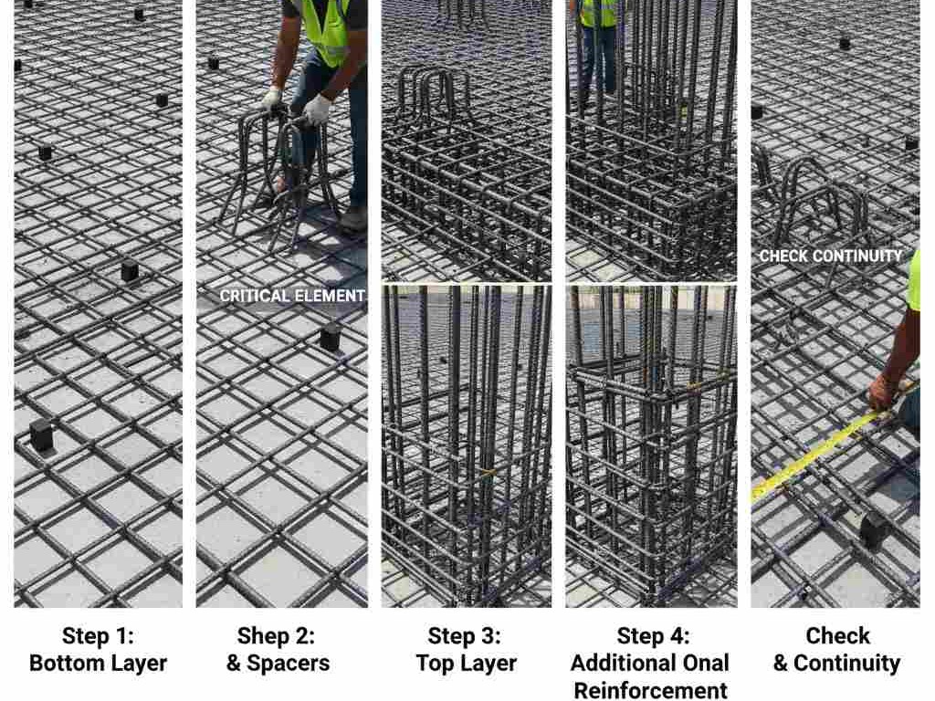 تسليح الحصيرة (تفاصيل، كراسي، مسافات، تغطية)