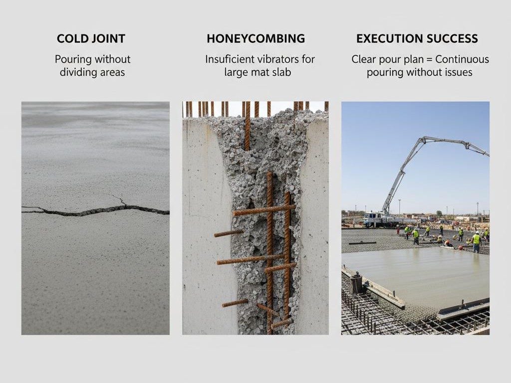 • خطة تنفيذ الأساسات (Sequencing / Access / Concrete Pour Strategy)