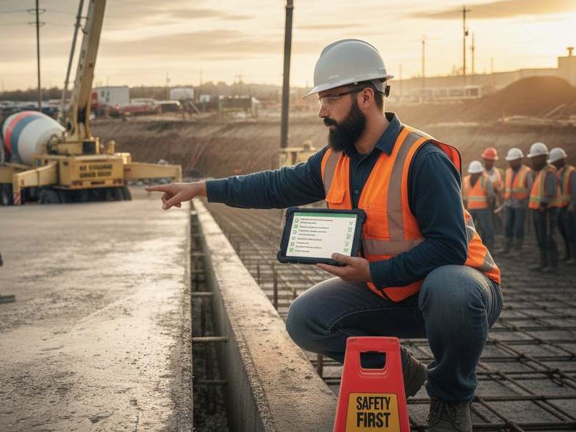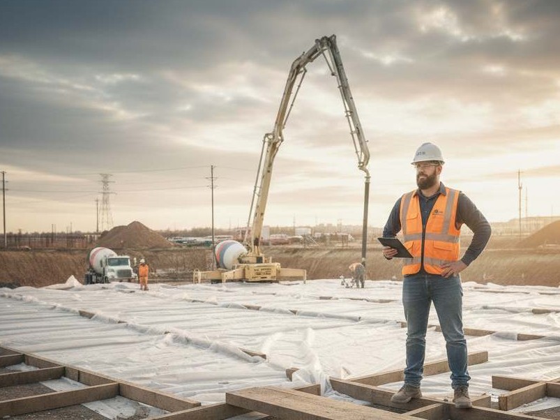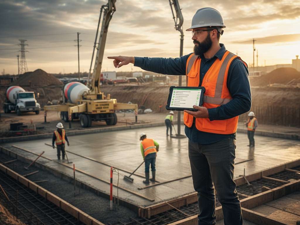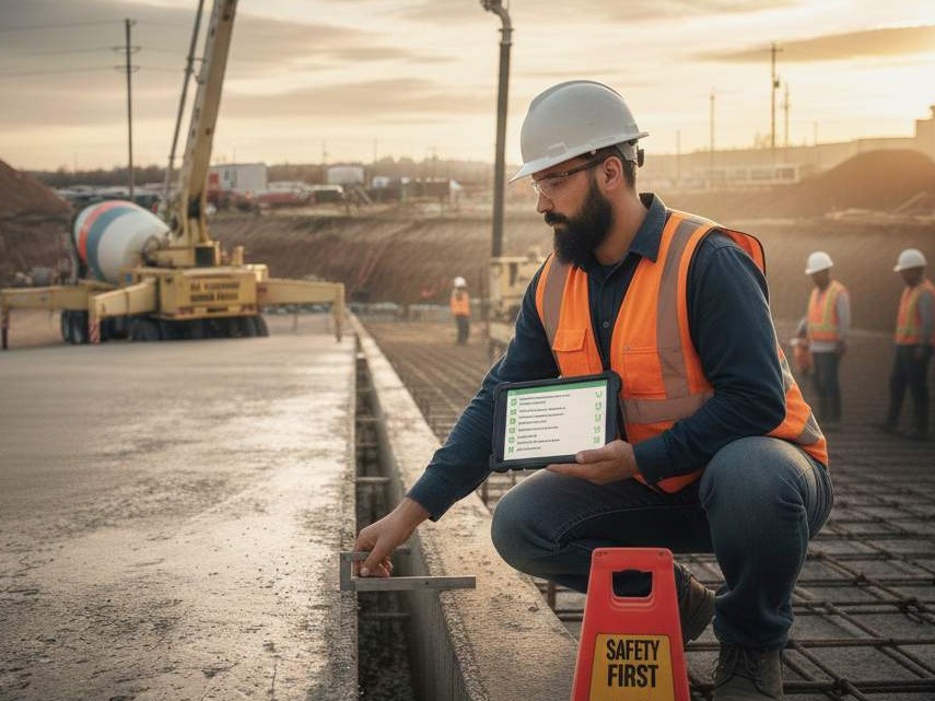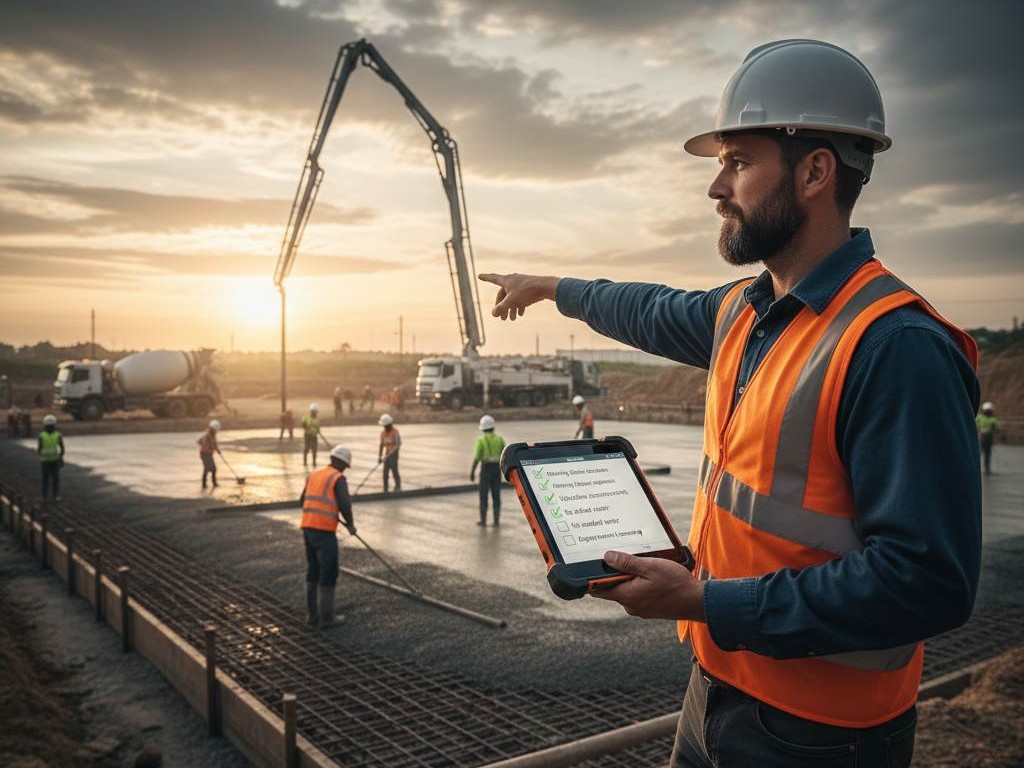 • مكونات الخرسانة وضبط المواد (مواد/ماء/إضافات)