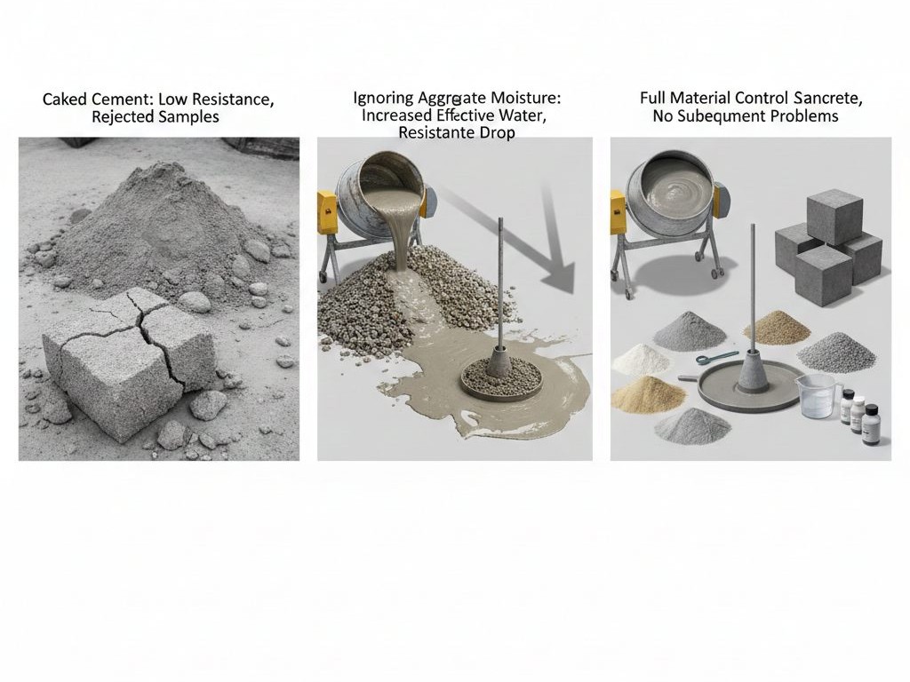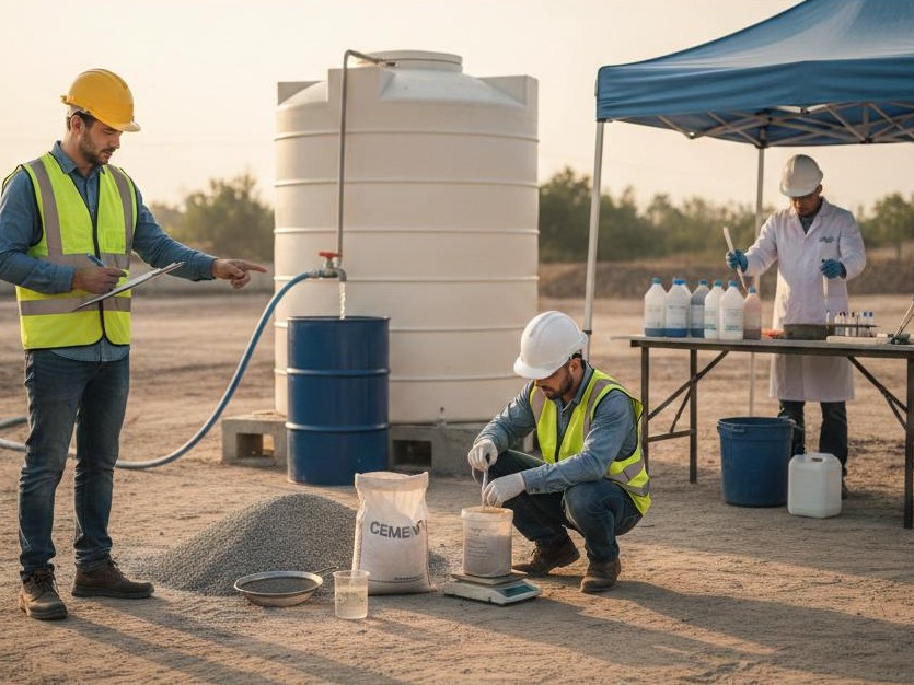 مكونات الخرسانة وضبط المواد (مواد/ماء/إضافات)