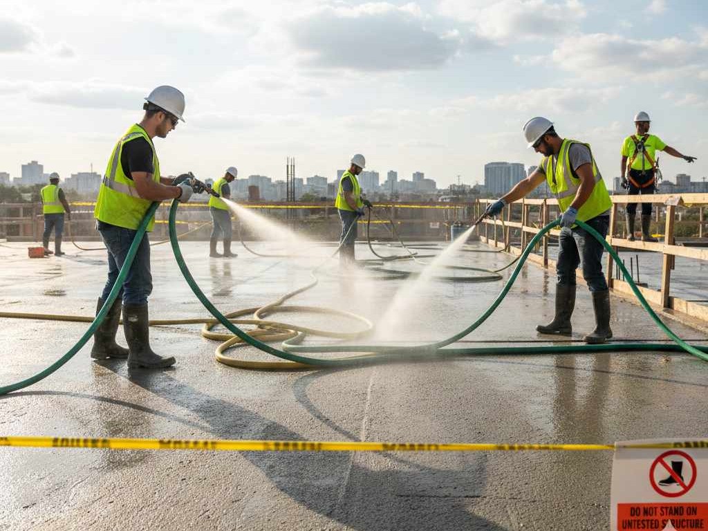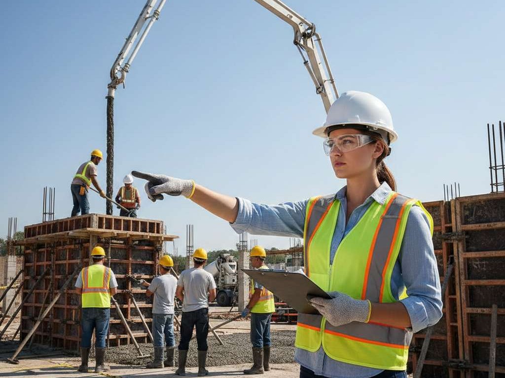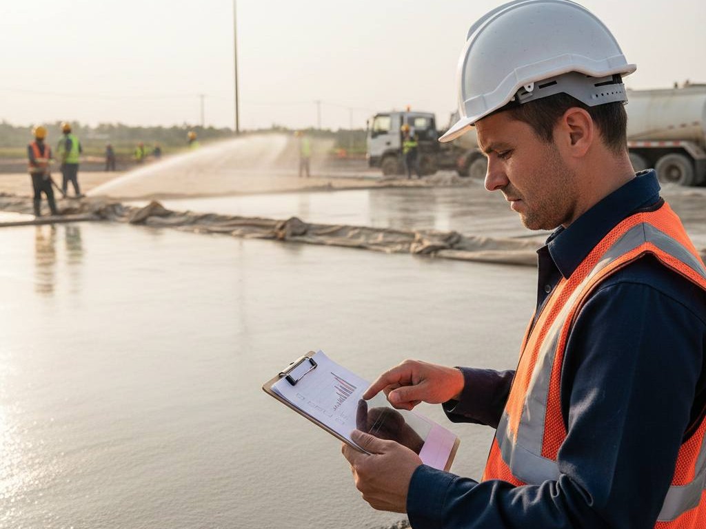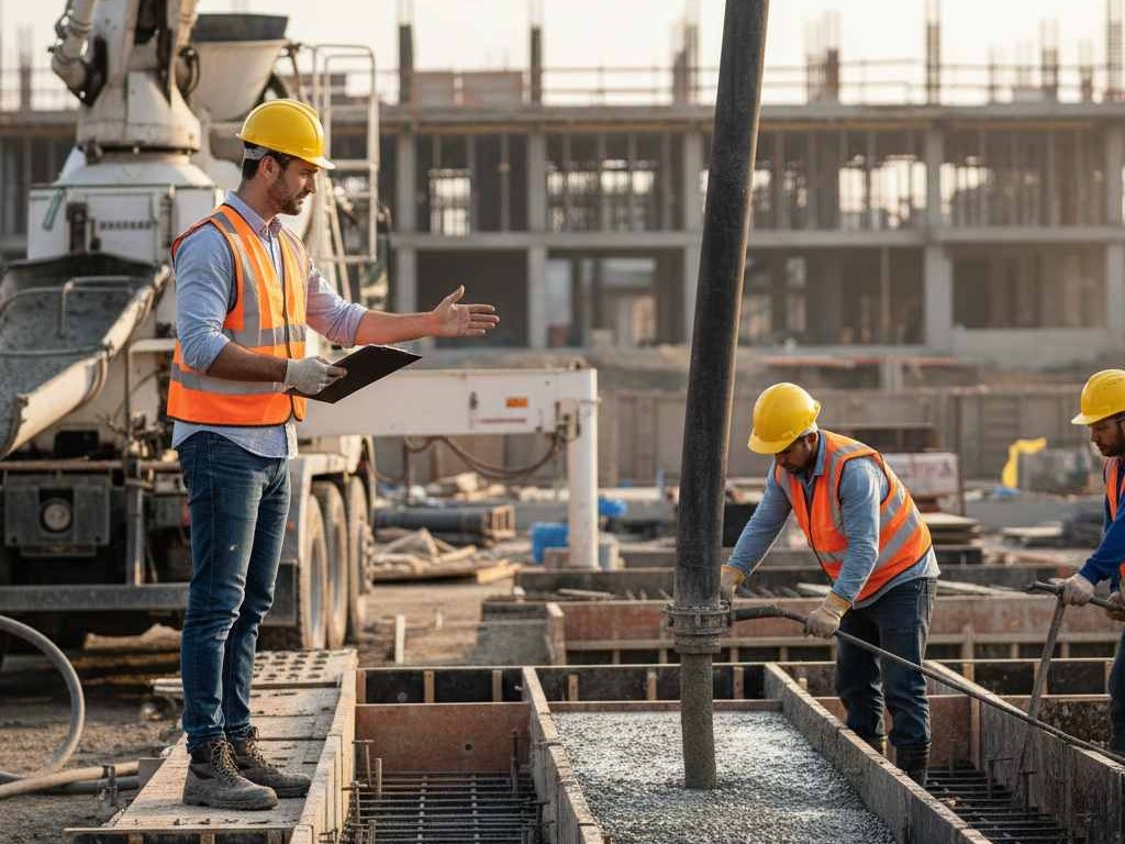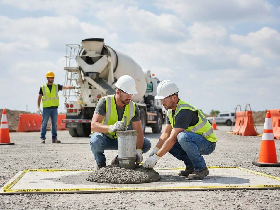 • مكونات الخرسانة وضبط المواد (مواد/ماء/إضافات)