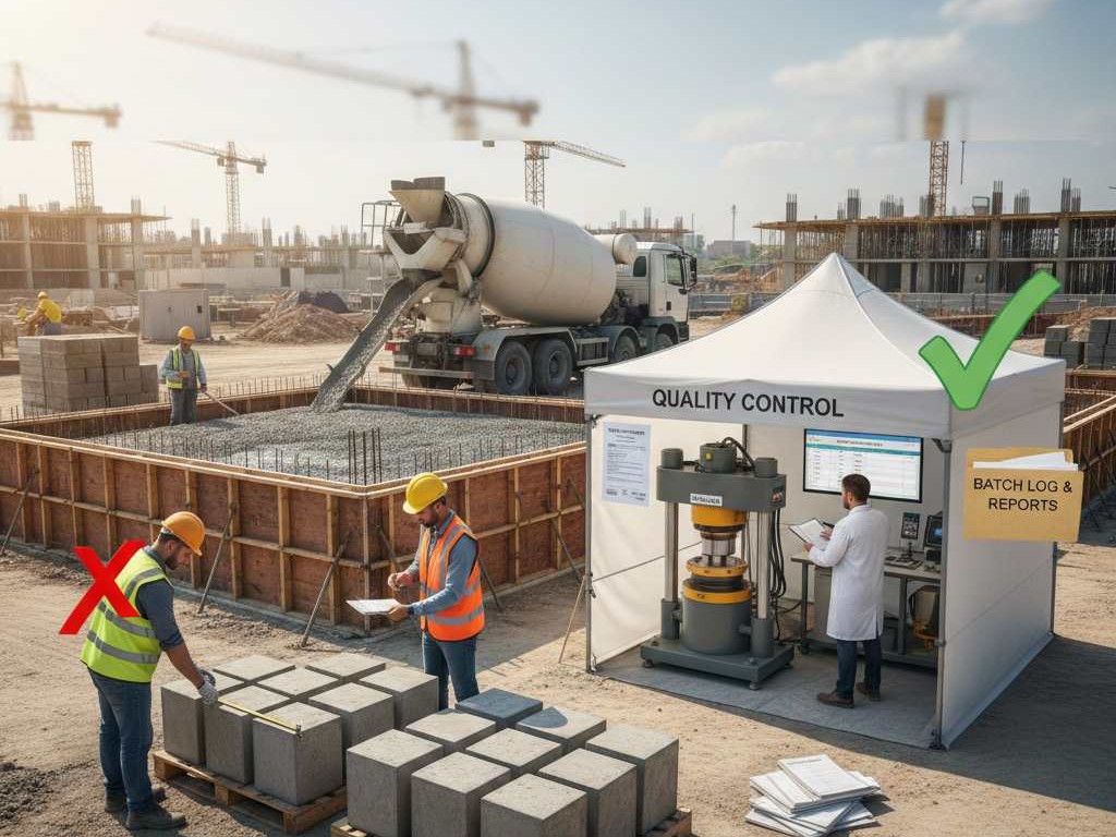 • عينات واختبارات المقاومة (Cubes) وتوثيق النتائج