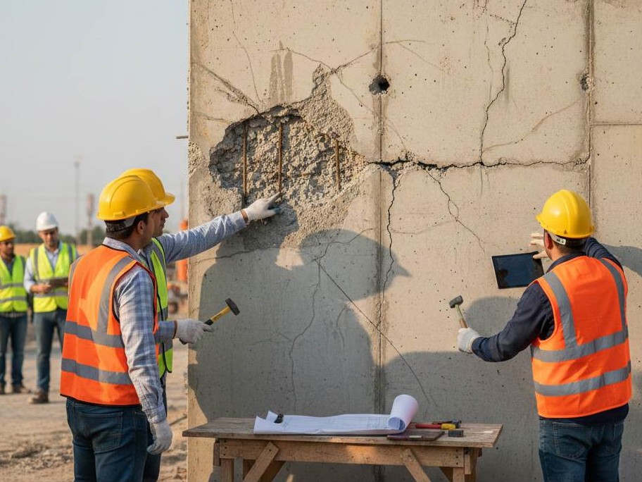 عيوب الخرسانة ومعالجتها (Honeycombing / Cracks / Cold Joints)