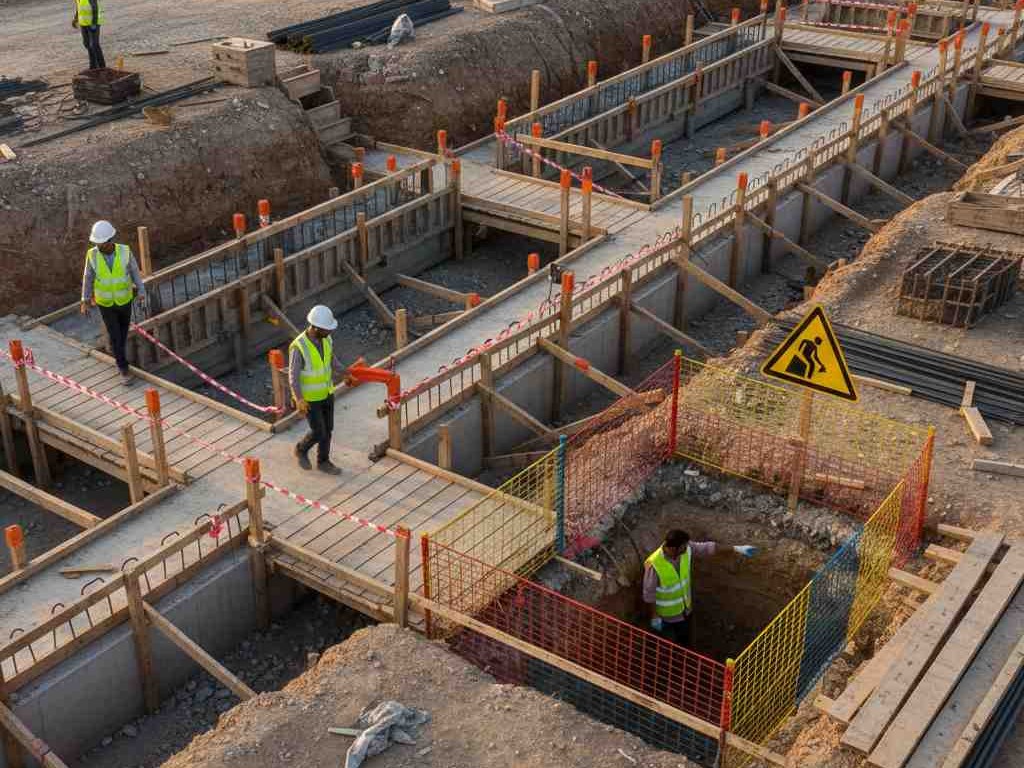 • خطة تنفيذ الأساسات (Sequencing / Access / Concrete Pour Strategy)